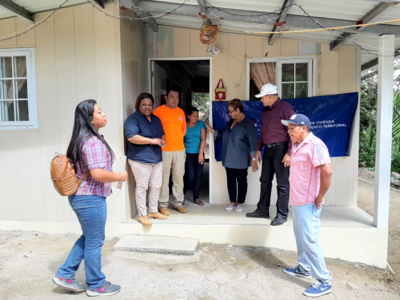 Jennifer Quintana, directora regional de Coclé, manifestó que ya se hizo entrega simbólica de las cuatro primeras viviendas en el distrito de Penonomé: dos en la apartada comunidad de Membrillo del corregimiento del Pajonal, al señor Efraín Valdez y a la señora Leovigilda González.