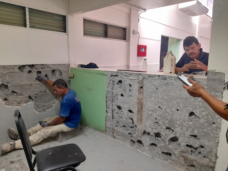 Panamá, 11 de julio de 2023. Personal de campo del Ministerio de Vivienda y Ordenamiento Territorial (Miviot) realiza trabajos de remodelación a estructuras internas dentro de las instalaciones de la Casa de la Cultura, que pertenece a la Asociación de Periodistas de Chiriquí.
