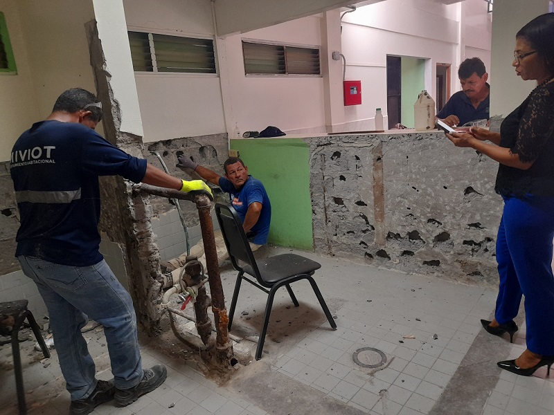 La cuadrilla de Chiriquí está integrada por tres albañiles y un plomero, quien ejecuta los trabajos y adecuaciones al sistema de tuberías de agua potable.