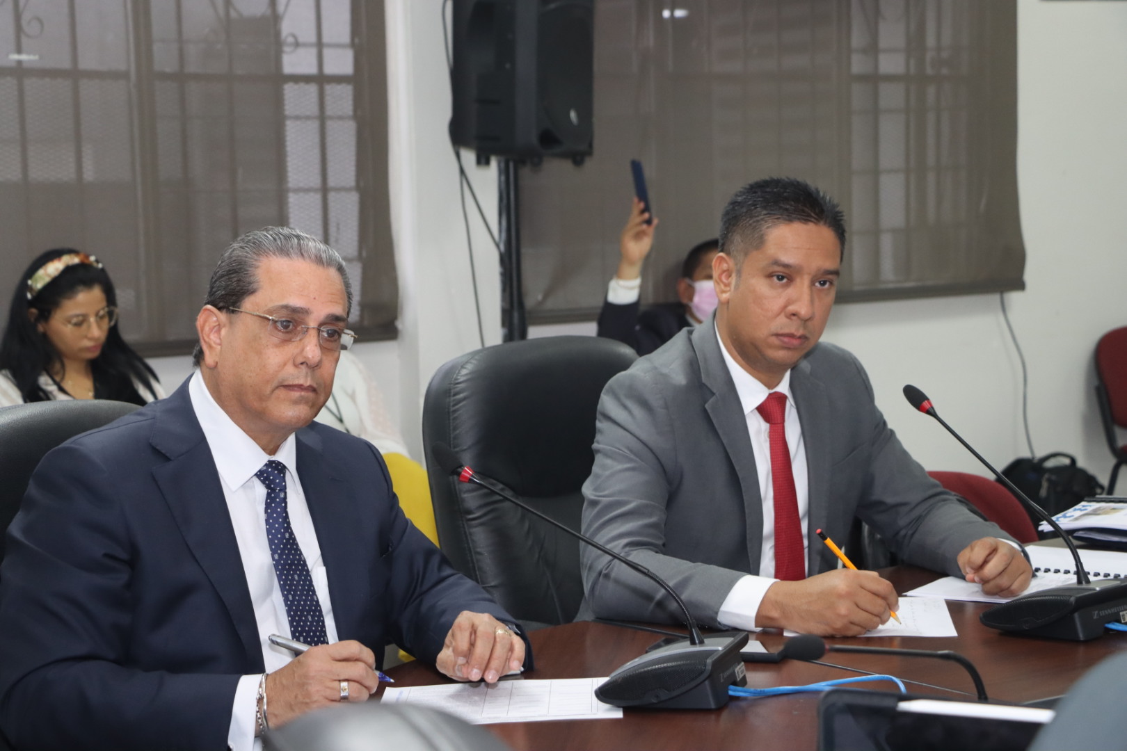 El ministro Rogelio Paredes, acompañado del director de Programación y Presupuesto de la entidad, Orfilio Acosta, sustentó ante los miembros de la comisión legislativa los cuatro de cinco traslados de partidas institucionales presentados a la consideración.