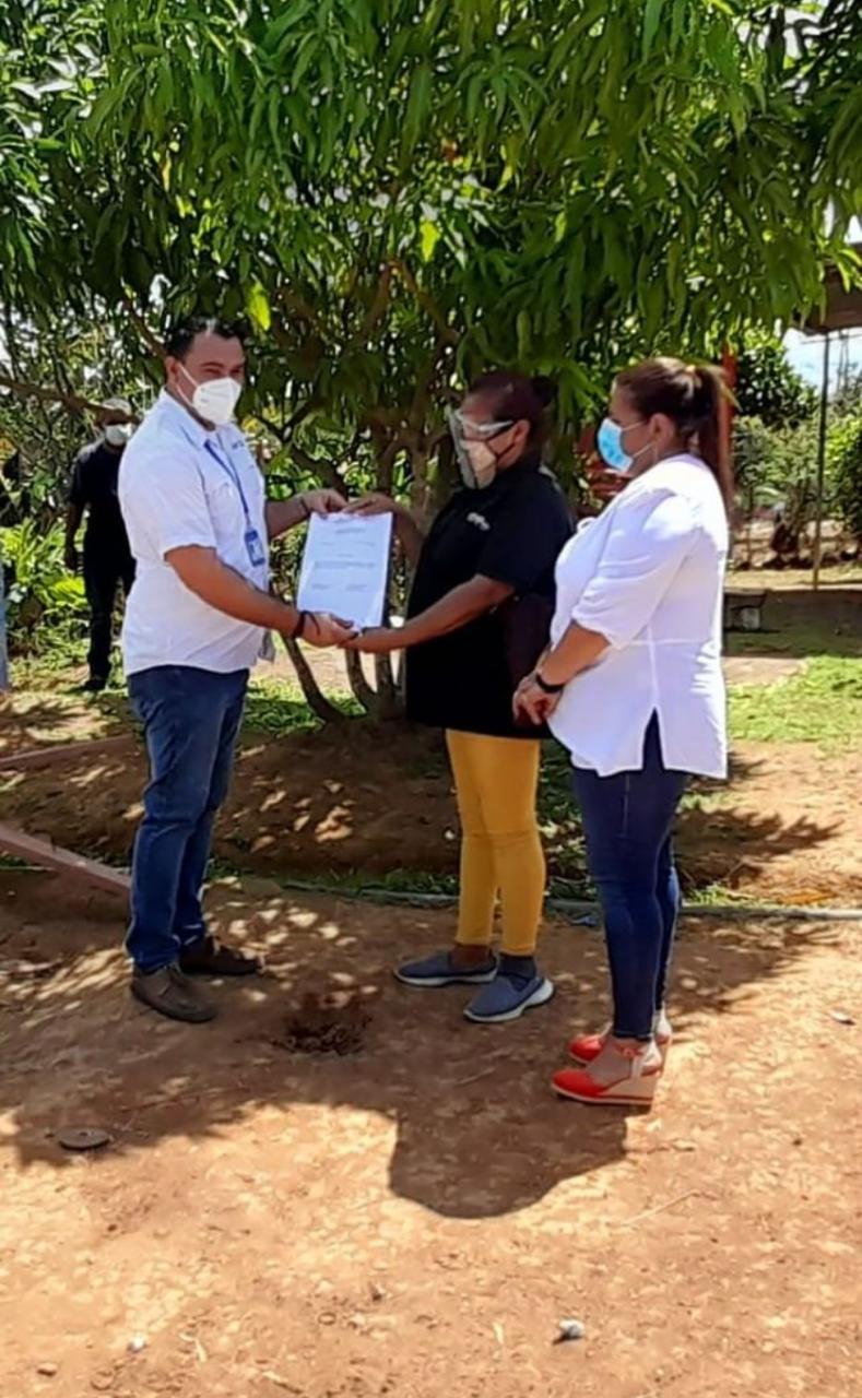 Panamá, 8 de marzo de 2021. La regional del Ministerio de Vivienda y Ordenamiento Territorial de Panamá Oeste entregó una certificación de asignación de un lote en la comunidad de Mastranto, en el corregimiento de Barrio Colón, en el distrito de La Chorrera, a una madre soltera que habita en precariedad junto a su hija menor y que fue damnificada por las inundaciones de 2015.