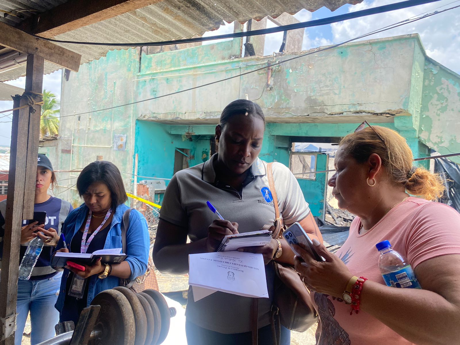 Panamá, 10 de abril de 2023. El personal de la Dirección de Coordinación Nacional de Proyectos y Asuntos Comunitarios (Conapro) brindó asistencia a las familias que quedaron damnificadas por el incendio en el inmueble 2394, ubicado en calle 4, corregimiento de Río Abajo, distrito de Panamá.
