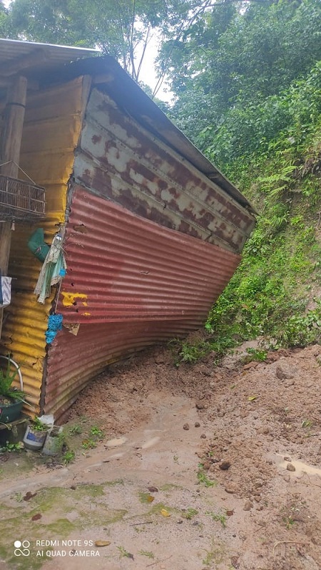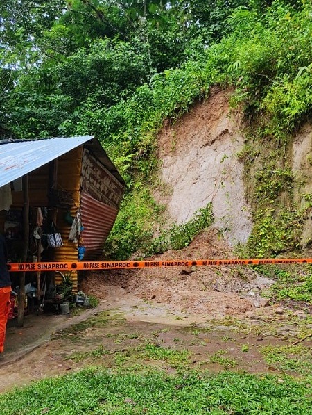 Según el informe técnico, las fuertes lluvias de los últimos días, ocasionaron que la tierra cediera y se deslizara, dejando inestable la superficie del terreno en el sector de Caimito, lo que pone en peligro a la familia.