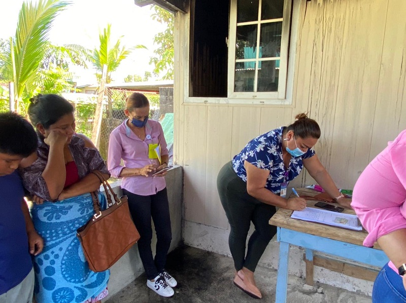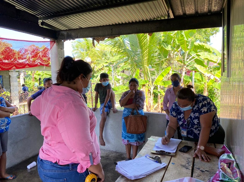 Personal del Ministerio de Vivienda y Ordenamiento Territorial (Miviot) de la provincia se apersonó al lugar, donde se realizaron las evaluaciones sociales y técnicas a Felicia Bonilla Berche, de 43 años, quien habita junto a su cónyuge Leonel Thomas, de 44 años, sus cuatro hijos en edades de 16 a 26 años y tres nietos de 1 a 5 años.