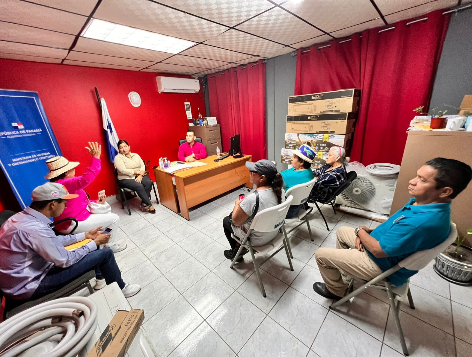 Panamá, 23 de marzo de 2023. La regional del Ministerio de Vivienda y Ordenamiento Territorial (Miviot) de la provincia de Chiriquí se reunió con moradores del asentamiento Loma Linda, localizado en el corregimiento de Pedregal, distrito de David, quienes pedían información sobre los avances en el proceso de legalización de las tierras que ocupan.