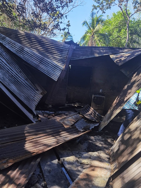 La residencia, con paredes de bloque, techo de zinc, vigas de madera y puertas de madera, fue afectada en su totalidad por las llamas que se esparcieron pese a las labores realizadas por los bomberos el día del siniestro.