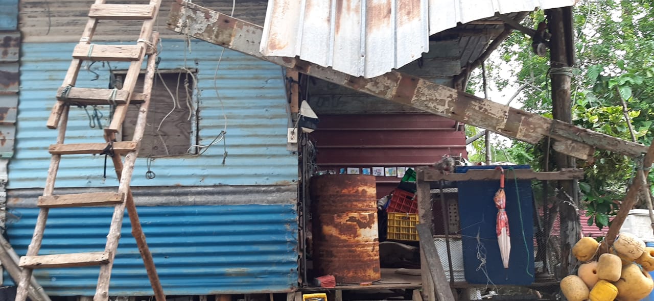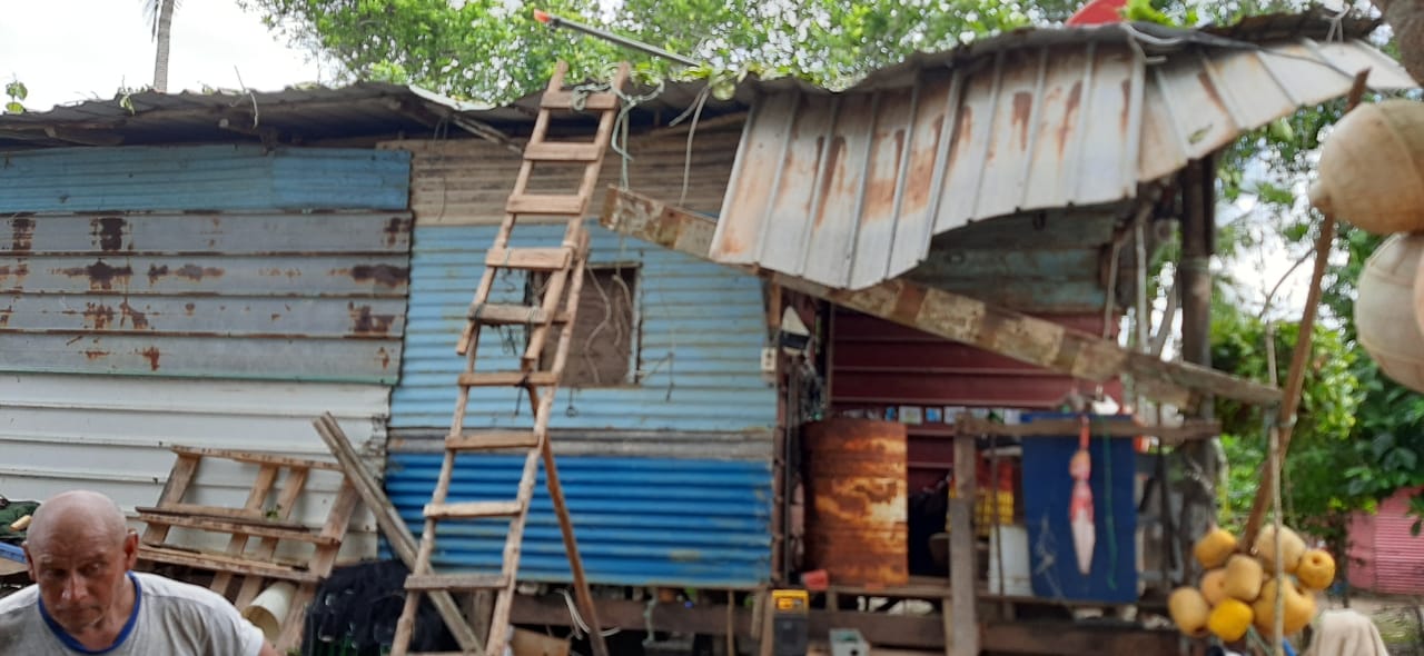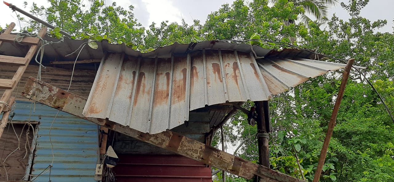 El director regional, Chico Solano, informó que también se produjo la caída de un árbol en la casa de Jeovanie Méndez, pescador de 52 años, en la comunidad de Kosovo, en Puerto Caimito, lo que ocasionó daños en tres hojas de zinc. El reporte indica que la vivienda tiene paredes de madera, está levantada sobre pilotes y no cuenta con los servicios básicos.