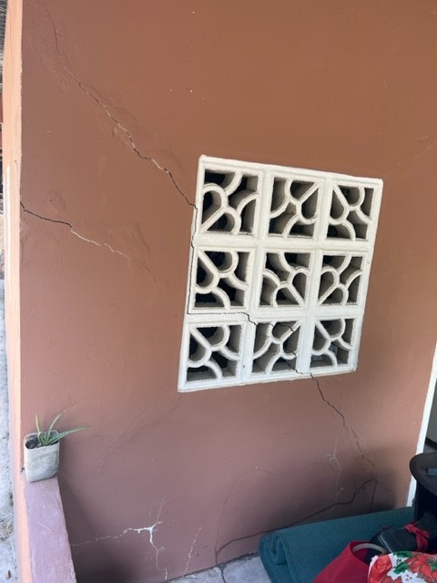 La residencia, construida con paredes de bloques, zinc, piso de cemento y con los servicios básicos, presentó rajadura en la parte frontal.