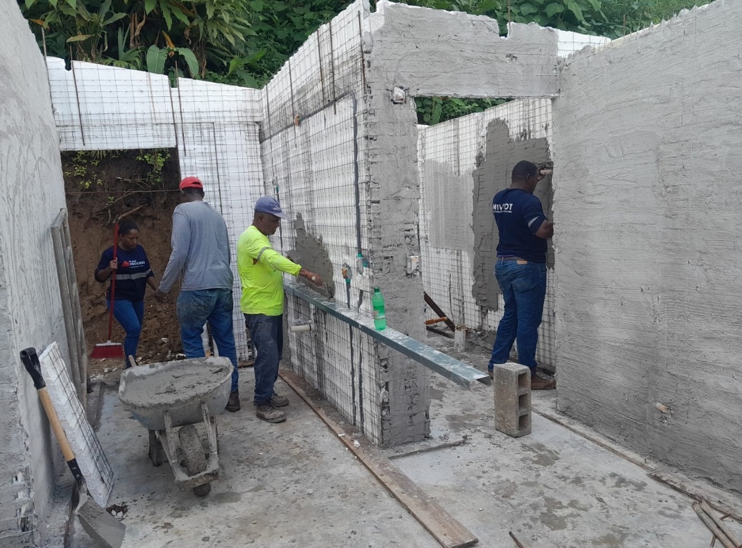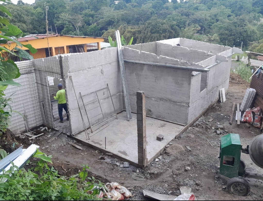 Panamá, 29 de septiembre del 2022.  Cuadrilla de trabajo del Ministerio de Vivienda y Ordenamiento Territorial (Miviot) de Panamá Norte, avanza en la construcción de una vivienda de Unidad Básica, para dos adultas mayores que viven en condición de pobreza extrema, en el corregimiento de Alcalde Díaz, distrito y provincia de Panamá, el cual presenta un avance del 70%.