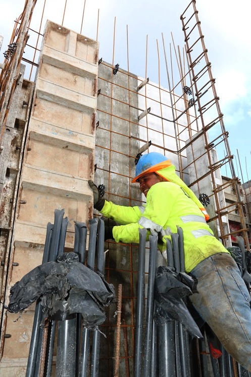 “Se trabaja en la colocación de zapatas y placas niveladoras, compactadoras de terreno, instalación de material de electricidad y plomería en los edificios 11 al 23 y se iniciaron labores de movilización de tierra para la construcción de la planta de tratamiento”, manifestó Pineda.
