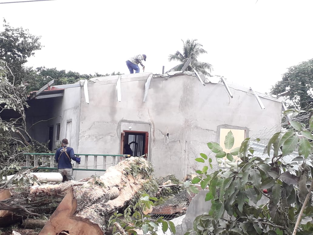 Panamá, 1 de junio de 2020. Cuadrillas del Ministerio de Vivienda y Ordenamiento Territorial realizan la remoción de escombros para iniciar la reparación de una vivienda afectada por caída de árbol en el distrito de Changuinola, provincia de Bocas del Toro.