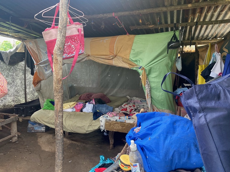 Una de las familias perjudicadas es la de Ana Tenorio, de 39 años, quien habita con su cónyuge Omar Velázquez, de 41 años y sus dos hijos, en una vivienda propia de un solo espacio, con techo de zinc, paredes de plástico y madera, sin ventanas, piso de tierra y usan letrinas.