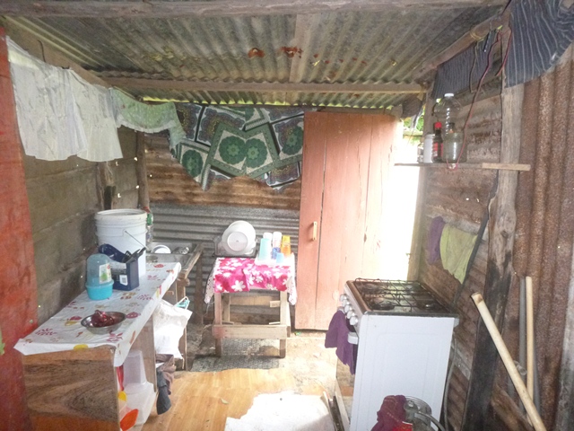El informe social detalla que la joven ocupa una vivienda cuya estructura es de un solo cuarto con paredes y techo de zinc, piso de tierra y tiene baño sanitario sin terminar. El terreno donde está asentada esta familia es propio.