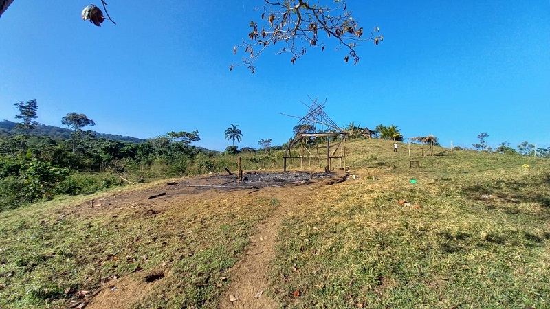 Panamá, 19 de febrero de 2021. Un rancho de madera y pencas que era utilizado como cocina resultó destruido por las llamas, dejando pérdidas materiales a una familia numerosa en la apartada comunidad de Caño Sucio, en el corregimiento de Río Indio, en el distrito de Penonomé, en la provincia de Coclé.