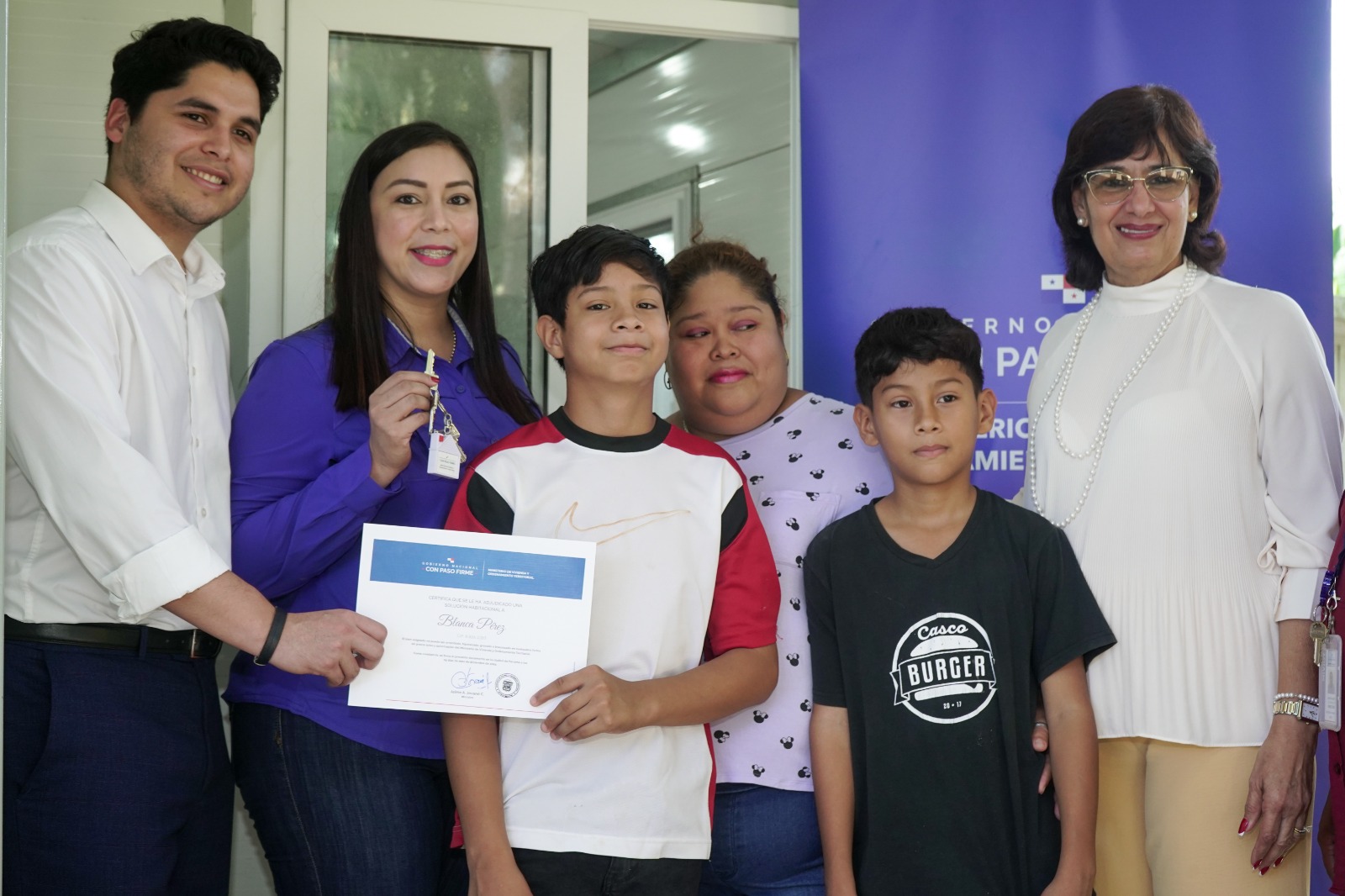 La primera solución habitacional fue entregada en el sector de María Eugenia, corregimiento de Chilibre, a Daniel Aguilar, de 41 años, su esposa Judith González, de 29 años y sus tres hijos, en edades de 11, 7 y 2 años. Además, González está en estado de gestación.