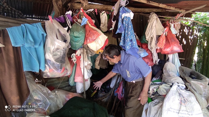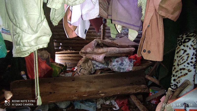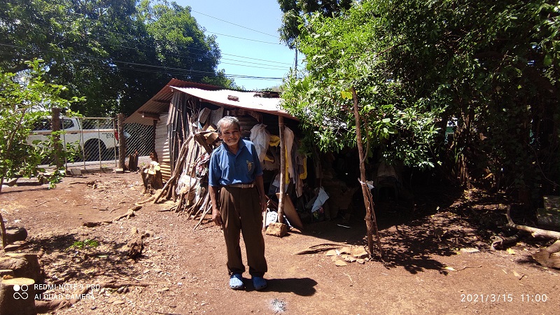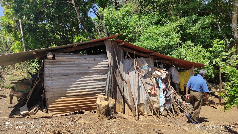 Mitre Morales habita solo en una vivienda de un solo espacio, con paredes y techo de zinc, piso de tierra y usa letrina. El agua potable la recibe de un vecino, no tiene energía eléctrica y cocina sus alimentos en una estufa de mesa que ubicó bajo un árbol de mango y se asea con una manguera en un baño improvisado.