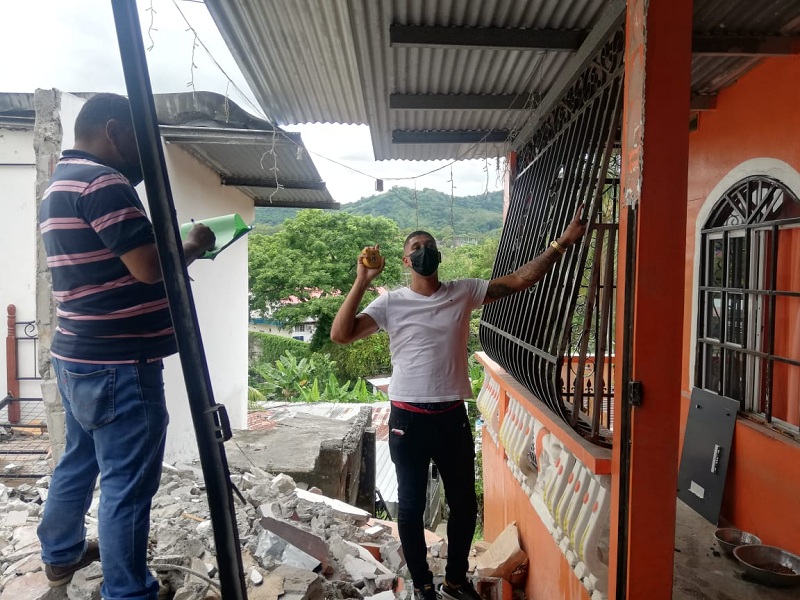 El director regional, Ricardo Meléndez y el personal de Coordinación Nacional de Proyectos y Asuntos Comunitarios, inspeccionaron las residencias donde una fue decretada por el Sistema Nacional de Protección Civil como inhabitable y la segunda resultó con afectaciones en las estructuras, techos y verjas de la parte frontal, por lo que se levantó el informe de los daños y se calcularon los materiales que conlleven las reparaciones.