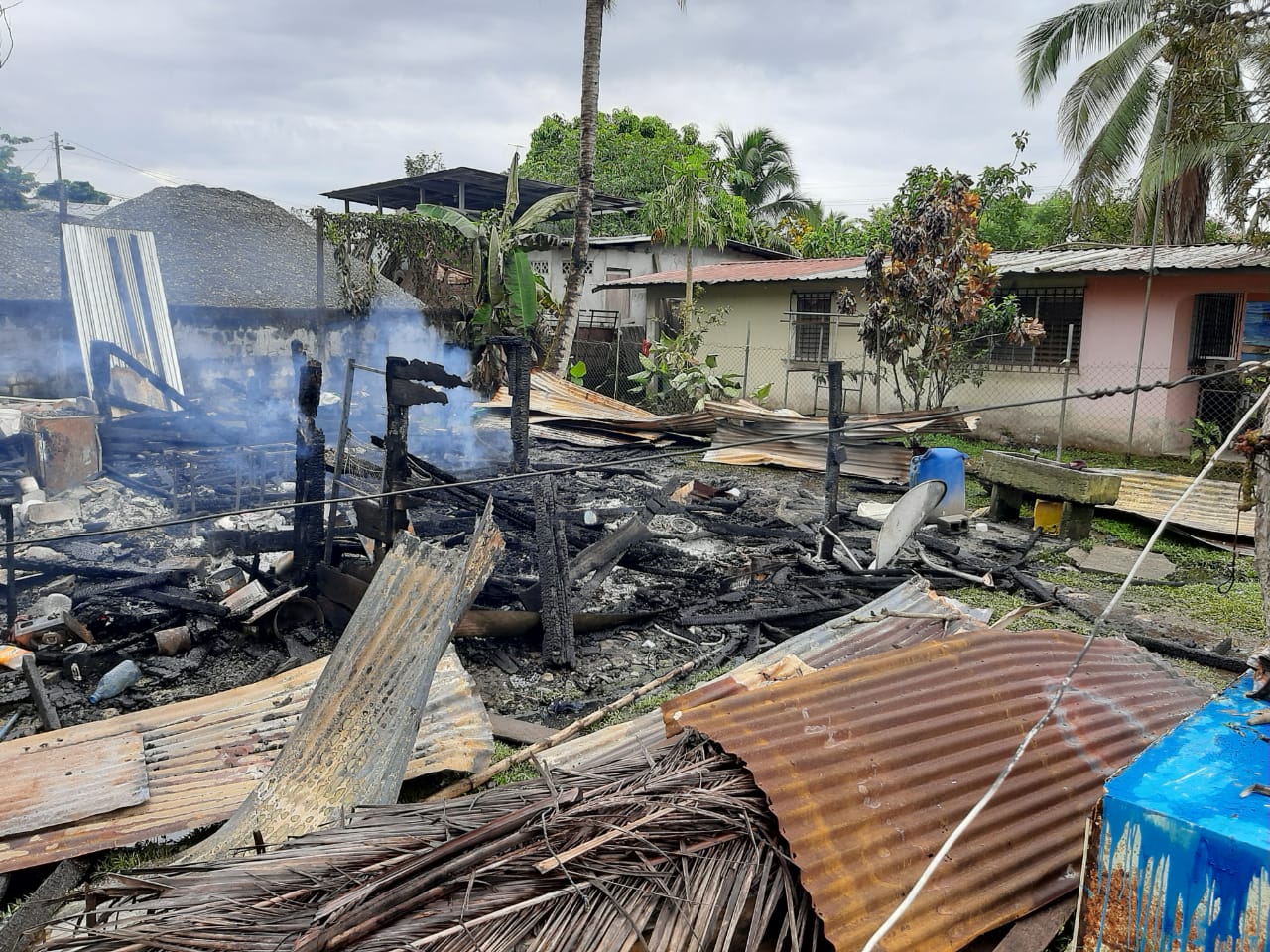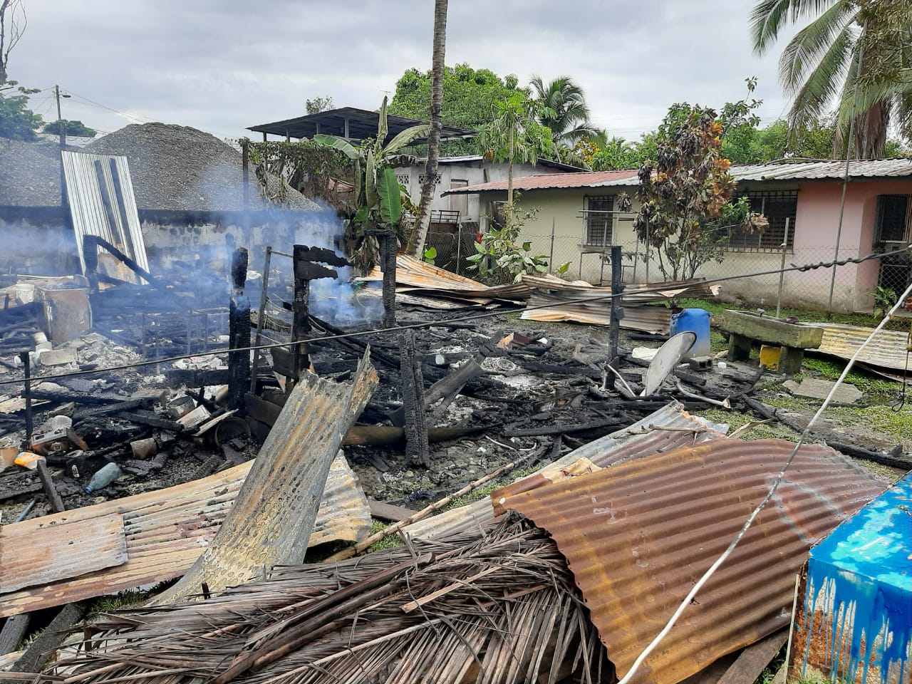 Panamá, 26 de junio de 2020. Personal de contingencia del Ministerio de Vivienda y Ordenamiento Territorial (Miviot) de Bocas del Toro realizó una evaluación social a una familia que lo perdió todo a causa de un incendio que consumió totalmente su casa en la Barriada Aeropuerto, en el corregimiento de Barriada Guaymí, distrito de Almirante.