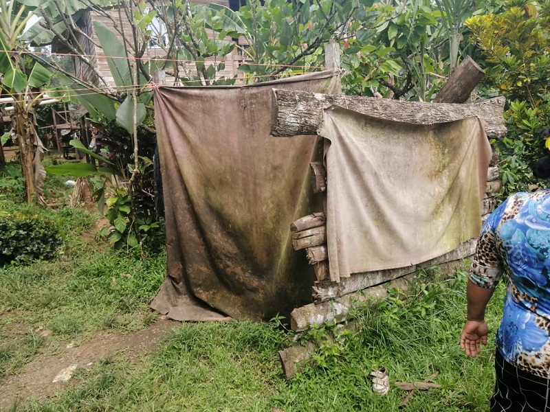 Su casa también de tambo, con paredes de plástico, tela y techo de zinc, no cuenta con servicios básicos, y debido a su situación es asistido por parientes, ya que no cuenta con un cuadro familiar.