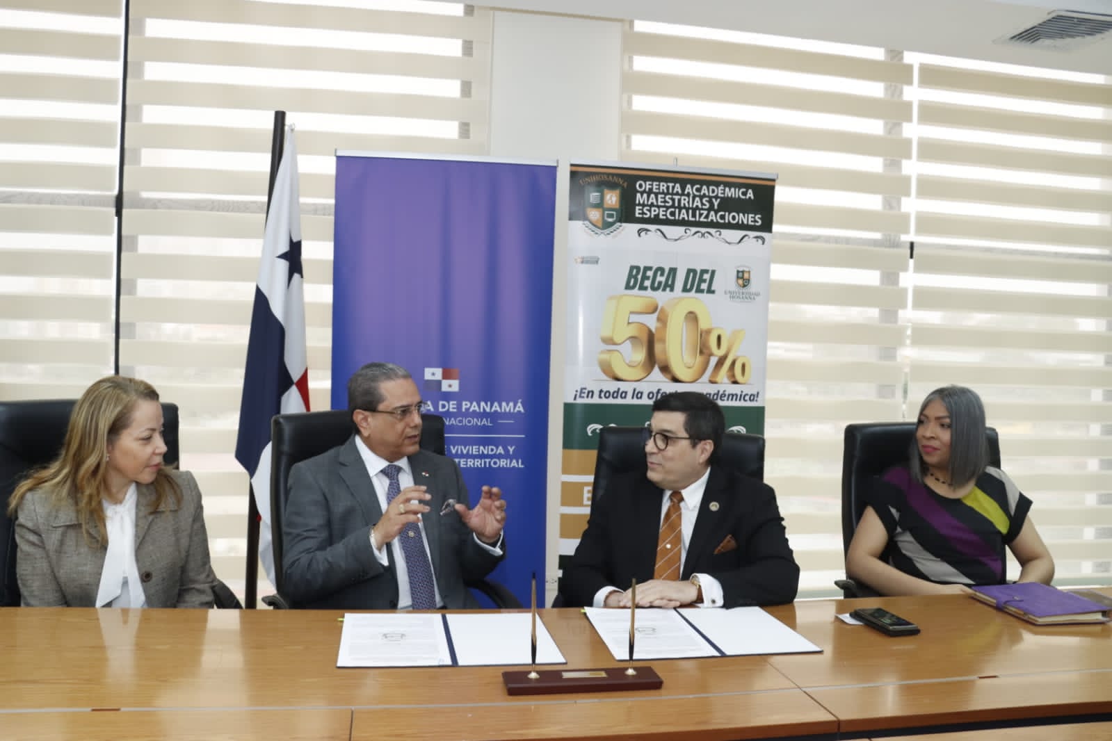 Panamá, 10 de octubre de 2023. El Ministerio de Vivienda y Ordenamiento Territorial (Miviot) y la Universidad Hosanna, del grupo de la Fundación evangélica Hosanna, se unieron para ofrecer oportunidades académicas a los servidores públicos de esta entidad social.