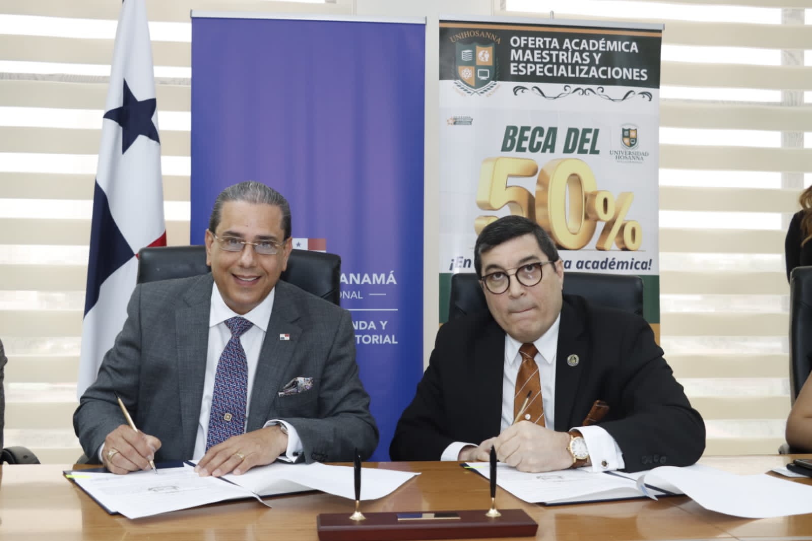 Con ese fin, el ministro Rogelio Paredes y el rector de la Universidad Hosanna, Claudio Endara, firmaron este martes un Memorando de Entendimiento, que permite establecer una armónica colaboración para ofrecer oportunidades educativas que mejoren la formación académica y profesional de los colaboradores y proporcionar oportunidades para complementar o iniciar sus estudios.