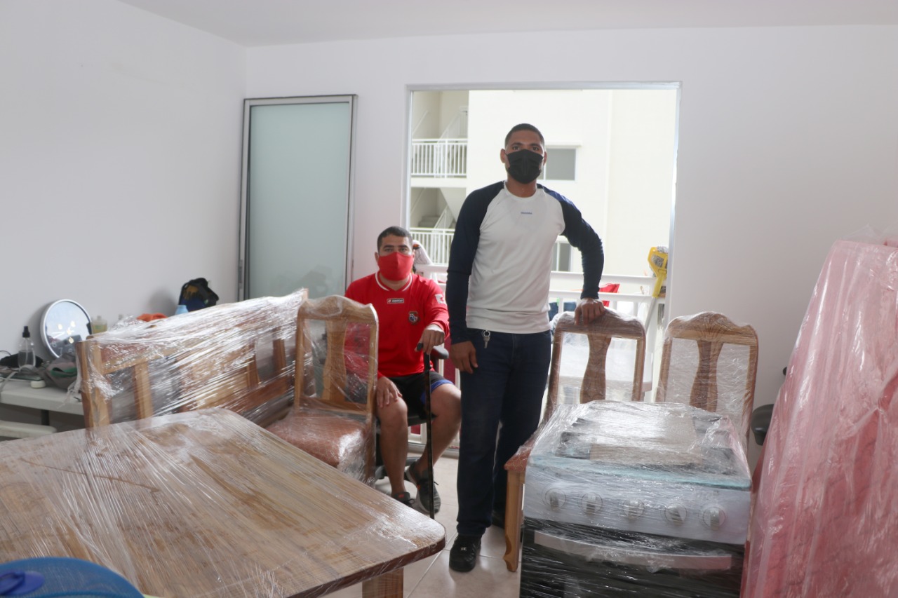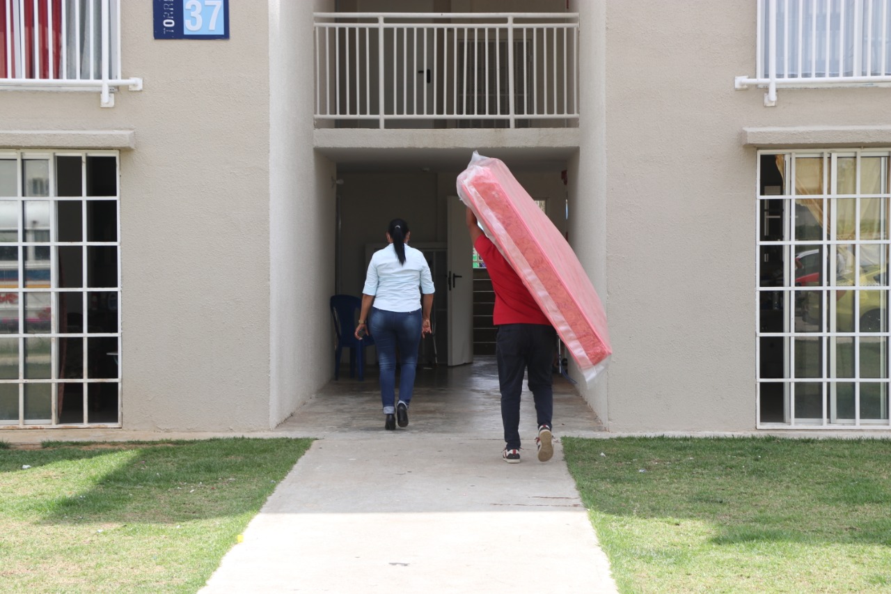 Colaboradores del Miviot, en coordinación con el Despacho de la Primera Dama, trasladaron los muebles como cama, juego de comedor y artefactos como estufa hasta las viviendas de las personas.