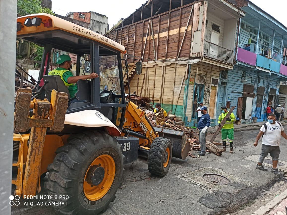 Los trabajadores, en conjunto con el Junta Comunal de Santa Ana y la Autoridad de Aseo, participaron en la limpieza de los escombros tras el colapso del viejo caserón de madera T- 1-18, ubicado en calle 14 oeste, el pasado 1 de octubre en horas de la noche.