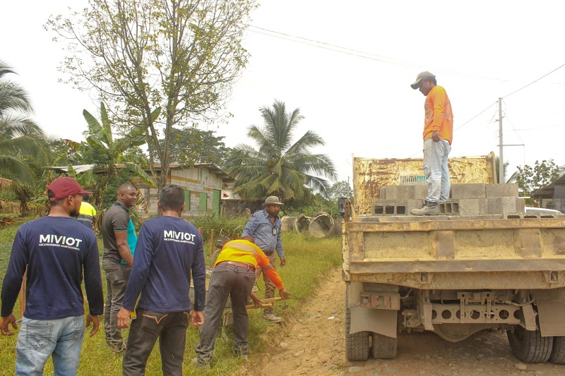 Personal del Ministerio de Vivienda y Ordenamiento Territorial (Miviot) en la provincia de Bocas del Toro llegó hasta el sector de Villa Verde, en el corregimiento y distrito de Changuinola, donde descargó parte de los materiales de construcción para dar inicio a esta obra social.