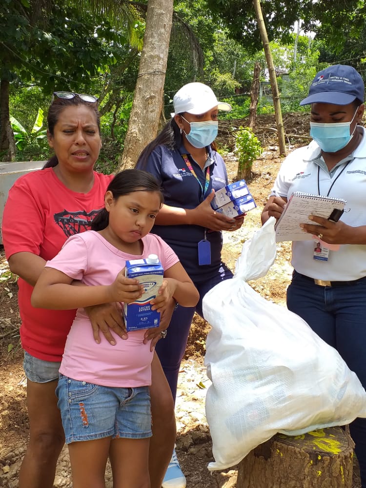El personal del Miviot hizo entrega de bolsas de comida del programa Panamá Solidario a esta familia.