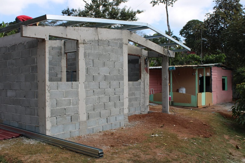 En el mismo sector, Viodelda Robles, quien habita con su esposo que tiene discapacidad visual, también se le edifica una casa de bloque completa de 44 metros cuadrados, adecuada con rampa y barandales para una mayor seguridad.
