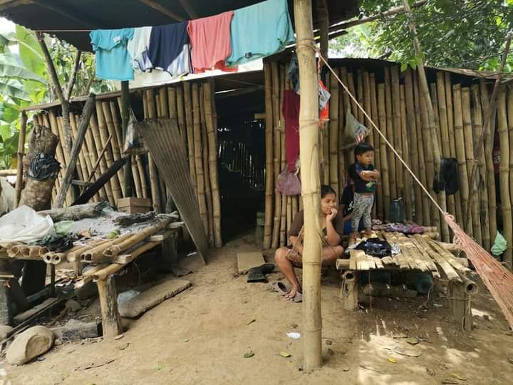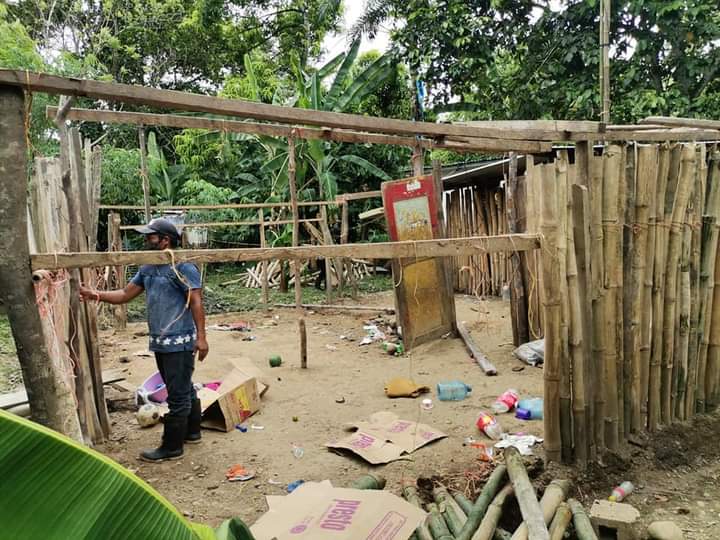 Esta familia monoparental habita en una casa improvisada con piso de tierra, paredes de caña blanca, algunas partes de tela, zinc deteriorado y utiliza letrina para sus necesidades.