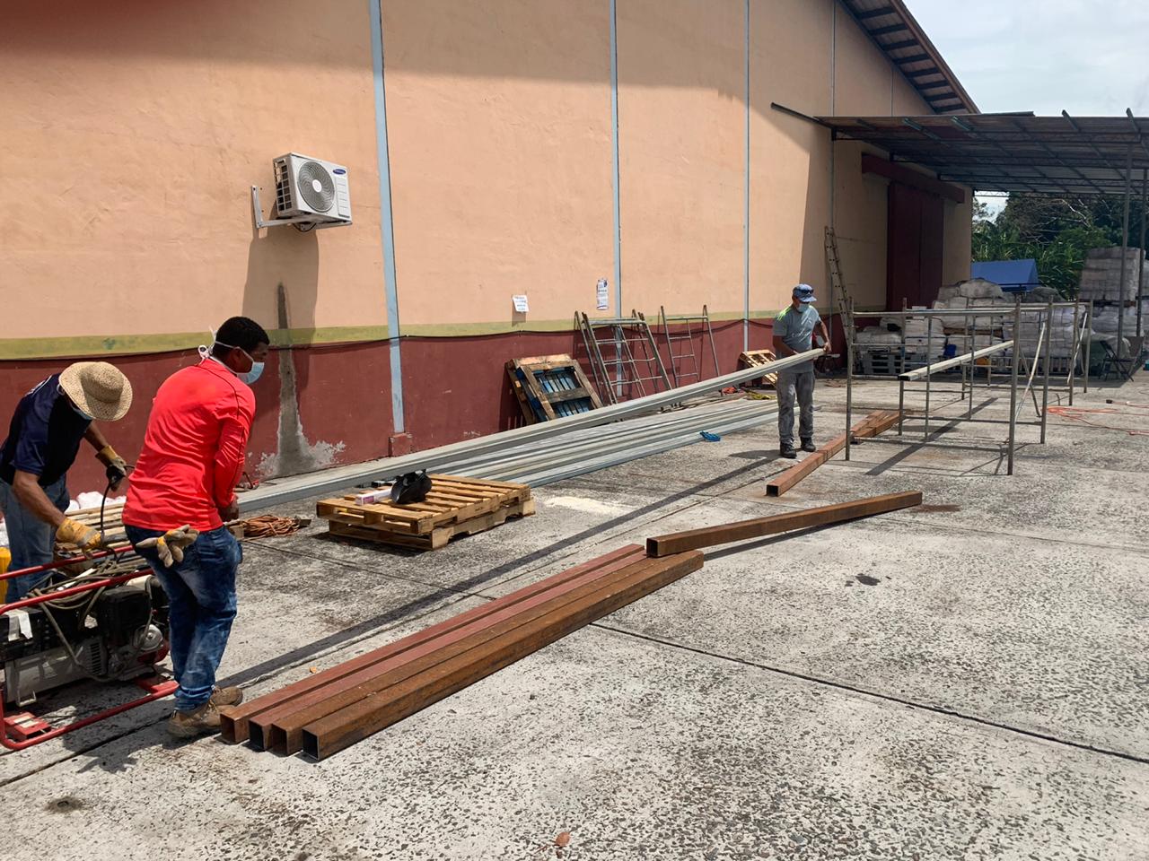 Panamá, 15 de abril de 2020. El Ministerio de Vivienda y Ordenamiento Territorial (Miviot) en la provincia de Chiriquí no se detiene y sigue apoyando las labores que desarrolla el gobierno central, a través del plan Panamá Solidario, y en esta ocasión construye una galera en la sede del Instituto de Mercadeo Agropecuario (IMA) en San Pablo Viejo, que facilitará los trabajos de elaboración de bolsas de comida, para que no se vean interrumpidos por el inicio del período de lluvias.