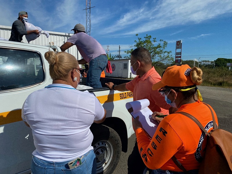 Jennifer Quintana, directora de regional del Miviot, aclaró que el personal que participa lo hace bajo todos los parámetros de bioseguridad, con el uso de mascarillas, gel alcoholado y protectores faciales, para el traslado de equipos de trazabilidad hasta las residencias de los afectados por el virus para el suministro de bolsas de comidas.