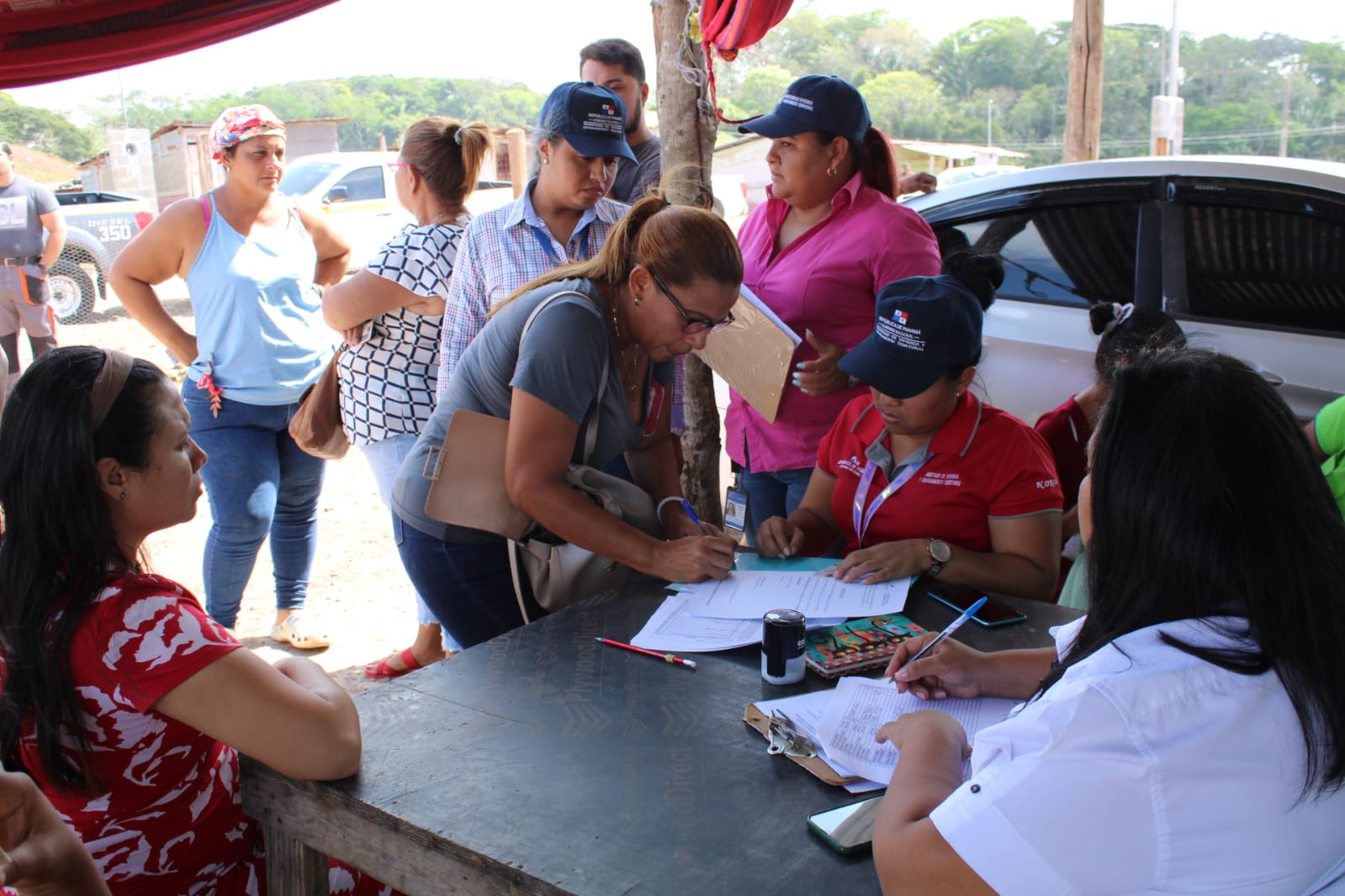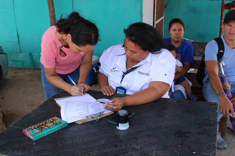 Panamá, 10 abril de 2023. Dieciséis certificados de asignación definitiva de lote entregó el Ministerio de Vivienda y Ordenamiento Territorial (Miviot) de Panamá Oeste a familias de escasos recursos y en vulnerabilidad del asentamiento informal Villa Unida en el sector de Monte Viejo en el corregimiento de Herrera del distrito de La Chorrera.