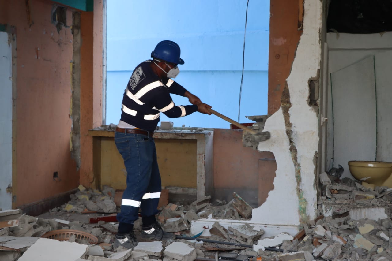 Paralelamente se limpia el área trasladando los escombros, posteriormente se hará la extracción de las zapatas que cimentaron por siete décadas estas edificaciones multifamiliares y por último la nivelación del terreno.