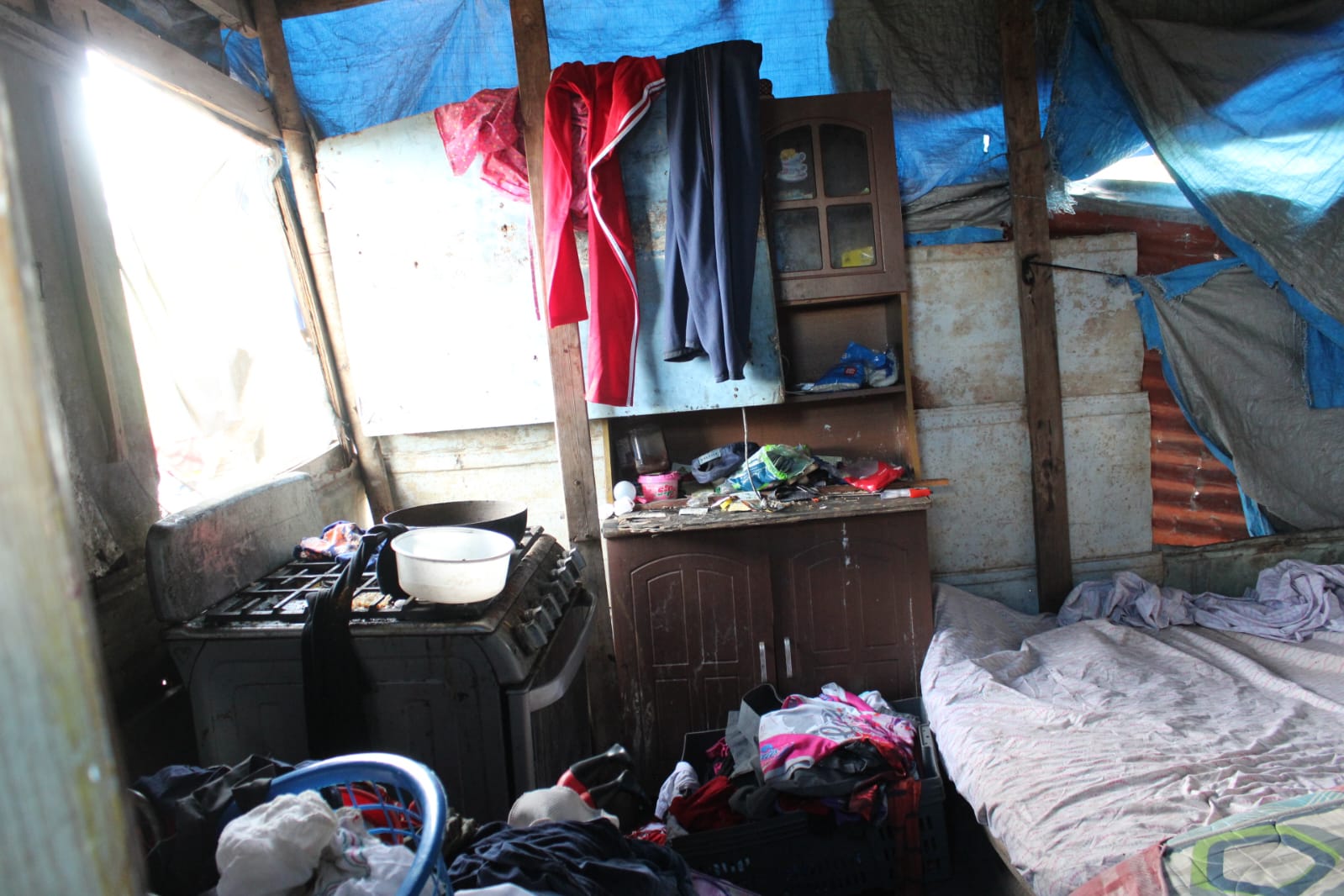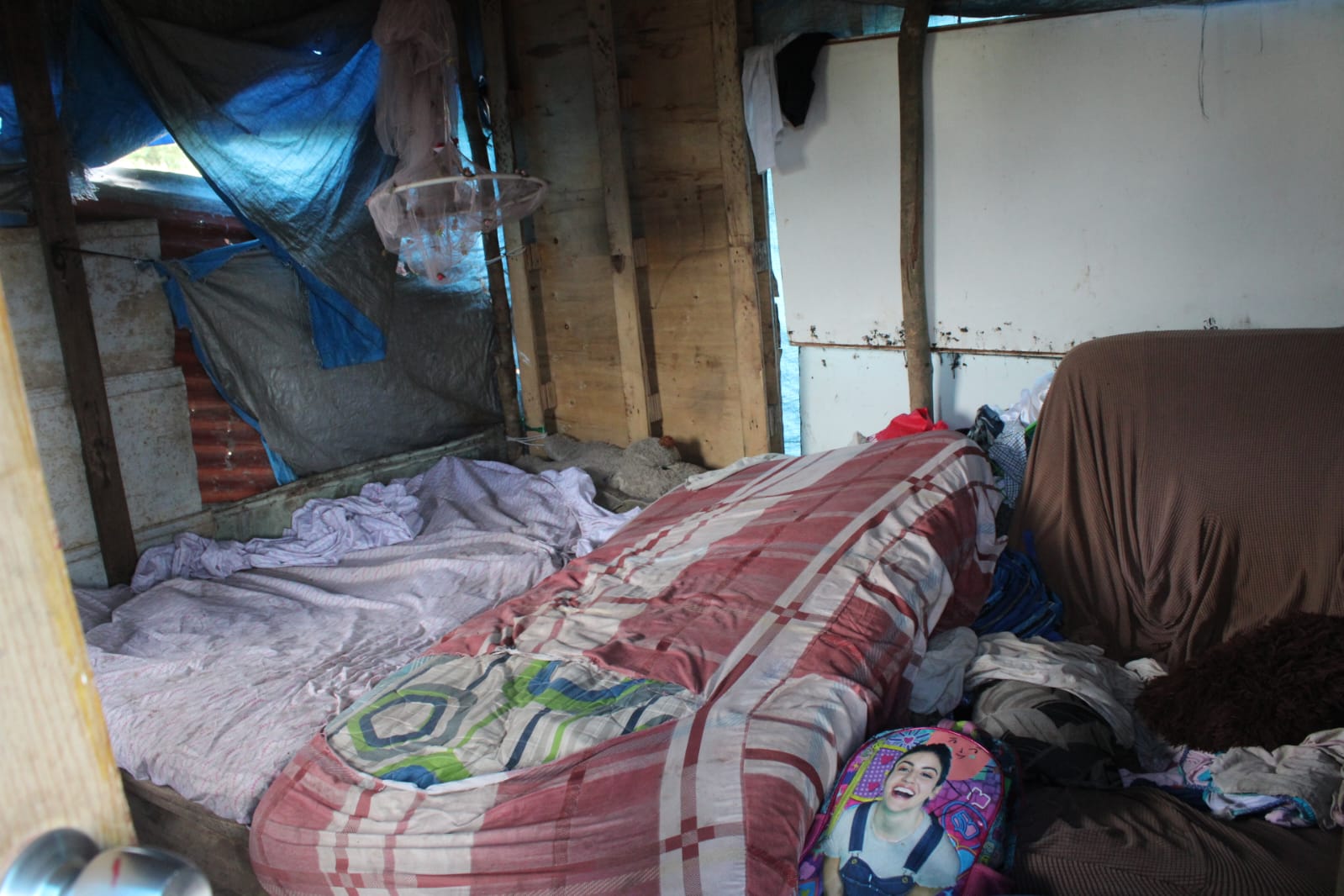 La vivienda, construida de manera improvisada con zinc y madera, carece de un piso adecuado y presenta una serie de deficiencias que agravan las condiciones de vida de sus habitantes.