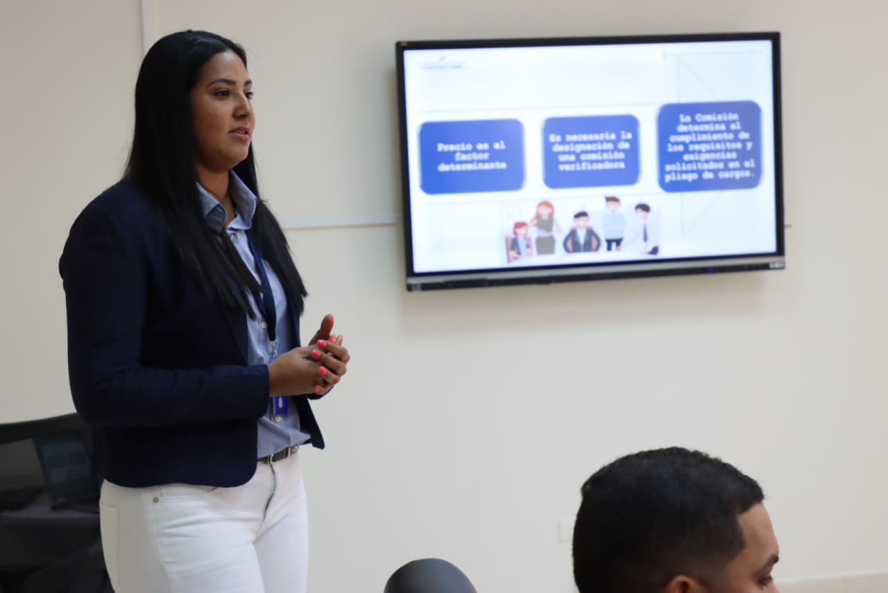 En la inducción, a cargo de Pany Singh, coordinadora de capacitación de la Dirección General de Contrataciones Públicas, estuvieron el secretario general de la institución, Alcibiades Pinzón; las asesoras Idelcarmen de Palma y Naydú Rudas; los directores Luis Pimentel (Promoción de la Inversión Privada) y Liz Marie Othon (Ingeniería); el jefe del Departamento de Compras, Bolívar Romero, entre otros.