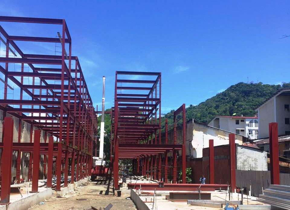 Mencionó que se adelantan trabajos de soldadura en las columnas de las torres 3 y 4 en el nivel 500, mientras se ejecutan labores de instalación y fijación de láminas de zinc en la estructura del techo de los edificios 3 y 4.