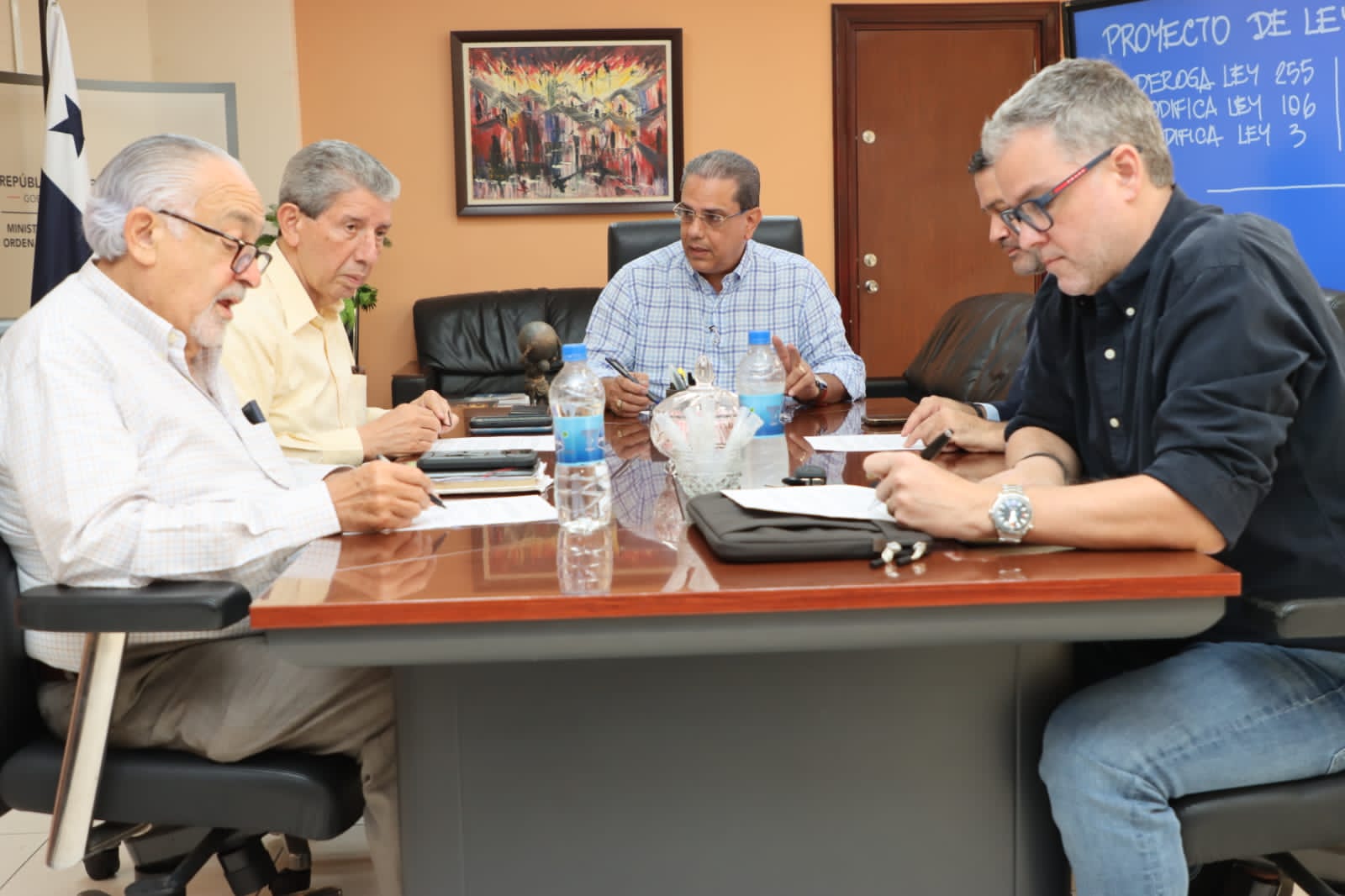 En esta reunión se encontraba el ministro de Vivienda y Ordenamiento Territorial, Rogelio Paredes; el ministro Consejero para la Facilitación de la Inversión Privada, José Rojas Pardini; el presidente del Consejo Nacional de Promotores de Vivienda (Convivienda), Gabriel Diez y por la Cámara Panameña de la Construcción (Capac), Antonio Docabo.