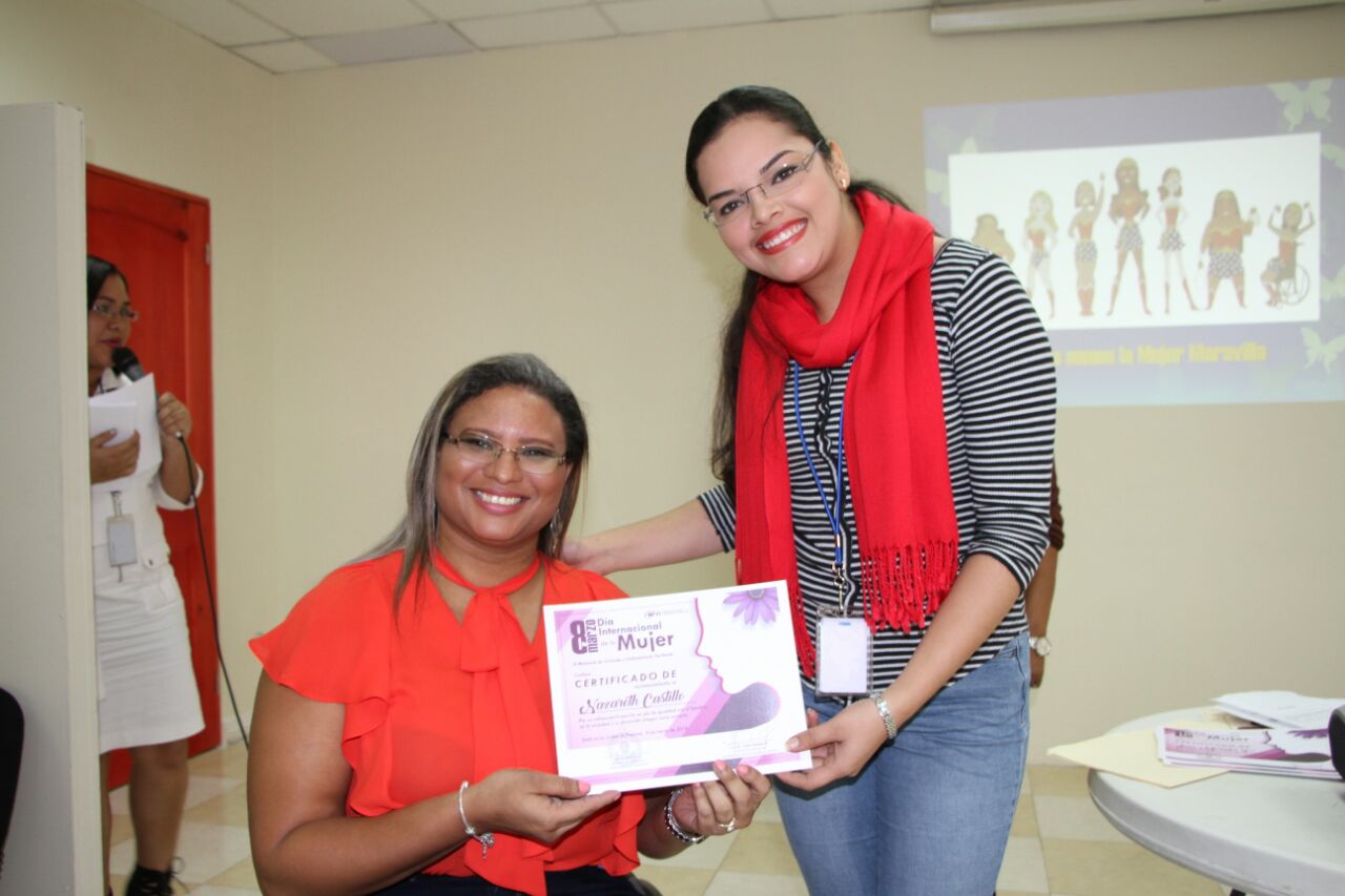 La jefa de la Oficina de Igualdad de Oportunidades, Iveth Valdés, expresó que además de galardonar a mujeres entregadas al trabajo que realizan en la institución, se realizó un volanteo en los departamentos para recordar el rol importante que juegan las féminas.