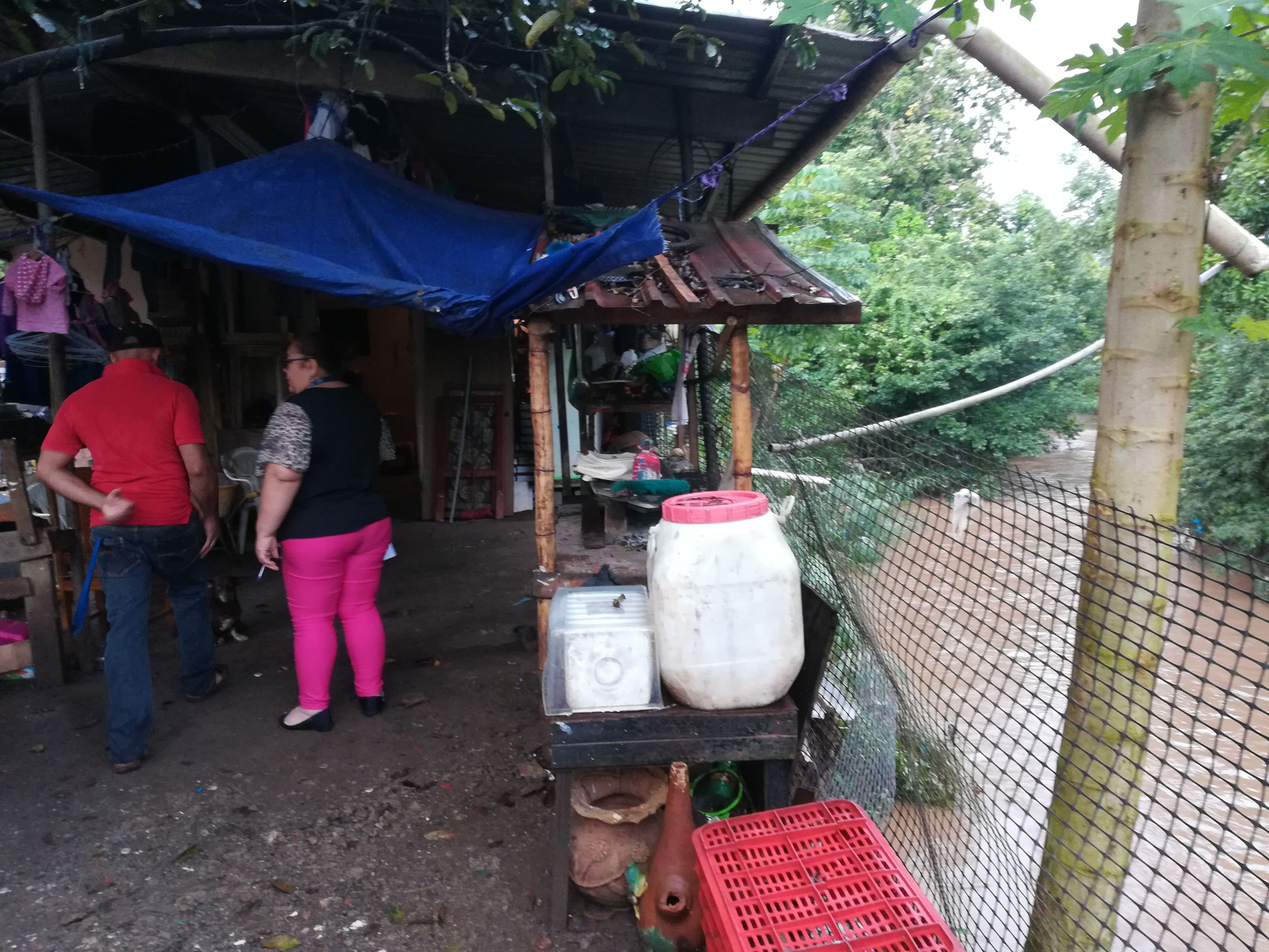 La residencia está ubicada a orillas del río Cabuya, que con las últimas crecidas ha socavado poco a poco el terreno hasta llegar justo donde está la propiedad, por lo que personal de Sistema Nacional de Protección Civil ordenó el desalojo, debido a que representa un peligro para los que allí habitan.
