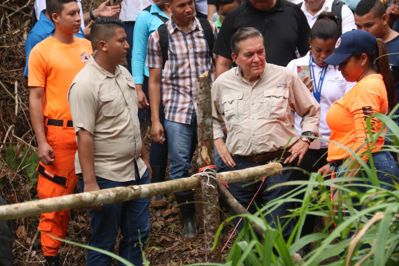 El presidente Cortizo Cohen, en compañía de los ministros y viceministros, Markova Concepción, Maruja de Villalobos, Ramón Martínez, Alejandro Ferrer, Rafael Sabonge, Adolfo Valderrama, Rogelio Paredes, Ericka Mouynes y Milagros Ramos, llegaron al sitio de la vivienda luego de una exhausta caminata durante dos horas por una trocha lodosa en la inhóspita selva que penetra hasta la comunidad de Cirí Grande.