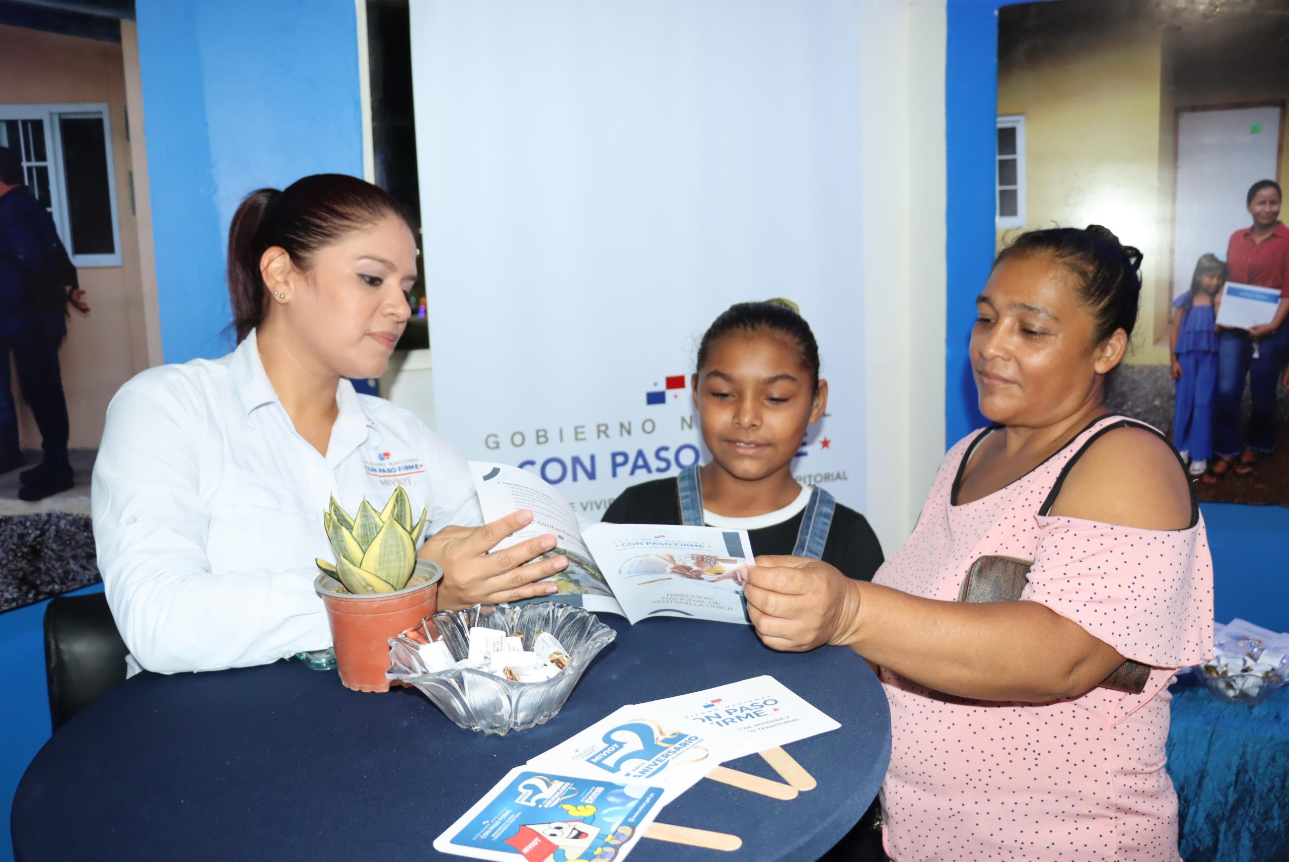 El personal de la Regional de Veraguas explica a los visitantes los diferentes proyectos en ejecución para apoyar a las familias en condiciones de pobreza y pobreza extrema y las gestiones de atención en los departamentos de Ventanilla Única y Desarrollo Social.