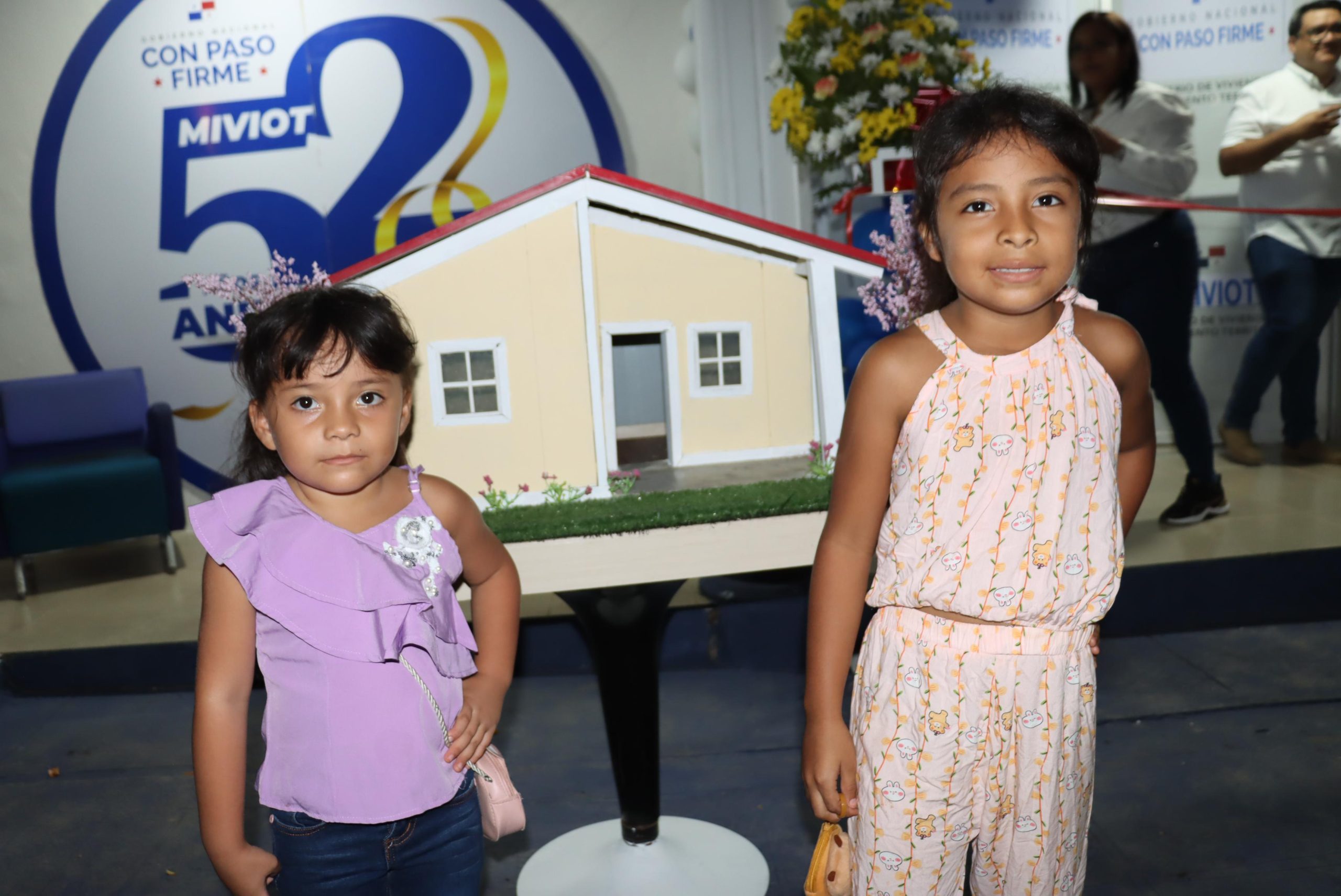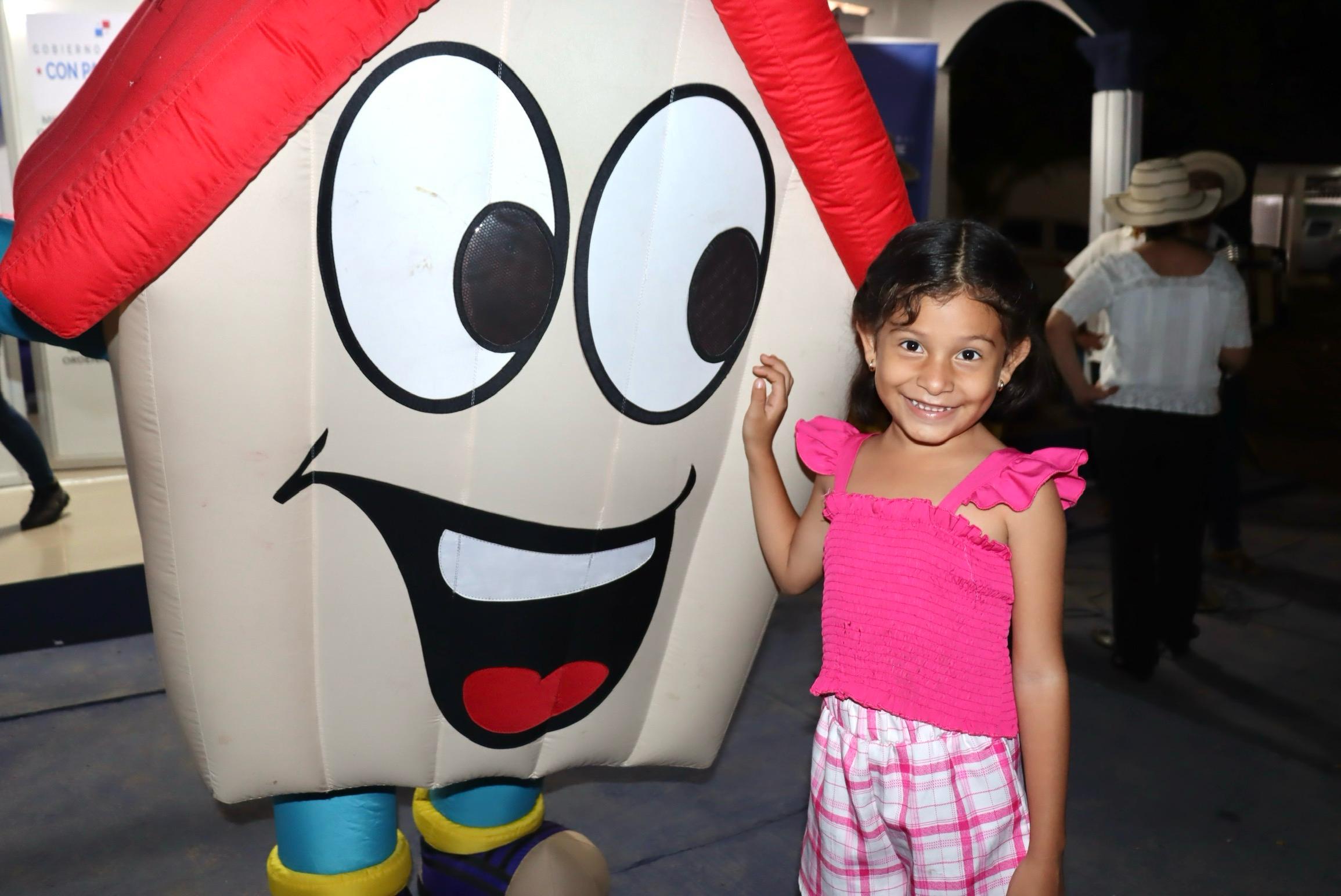 Adicional, los más pequeños pueden apreciar una réplica de vivienda, que gira sobre un soporte, para que conozcan en detalle la construcción de este tipo de obras de interés social.