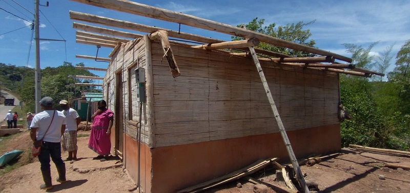 El equipo encontró hogares construidos de bambú, cemento, tablas y techo de zinc, algunas de hace 10 años a través del proyecto Bambú-Llave en mano.