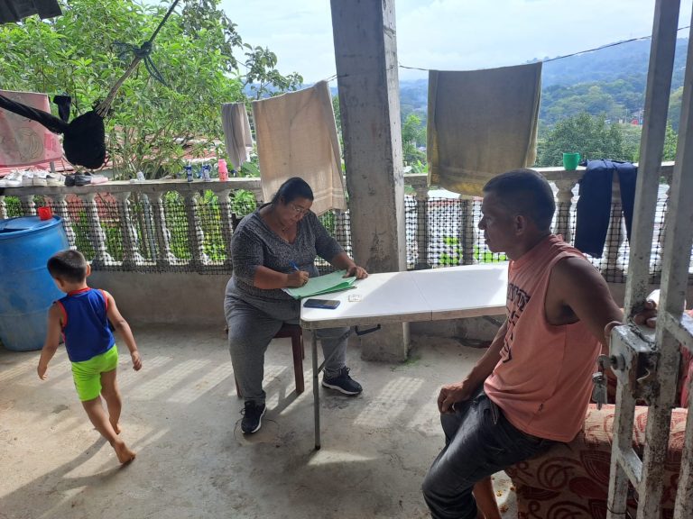 Panamá, 28 de agosto de 2025. Una familia afectada por un deslizamiento de tierra en Panamá Norte fue evaluada este jueves por personal técnico y social del Ministerio de Vivienda y Ordenamiento Territorial (Miviot), luego que su casa sufriera daños en varias partes.