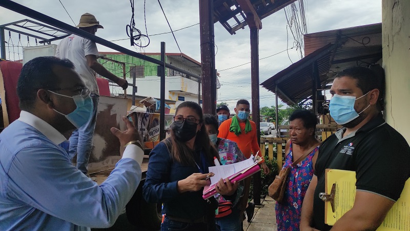 Panamá, 10 de junio de 2021. Una evaluación técnica y social realizó el equipo de contingencia del Ministerio de Vivienda y Ordenamiento Territorial (Miviot) de la regional de Herrera a una pareja de adultos mayores afectada por un desplome de pared en su residencia en la madrugada de este martes en la Calle Abajo del corregimiento de San Juan Bautista, en el distrito de Chitré.