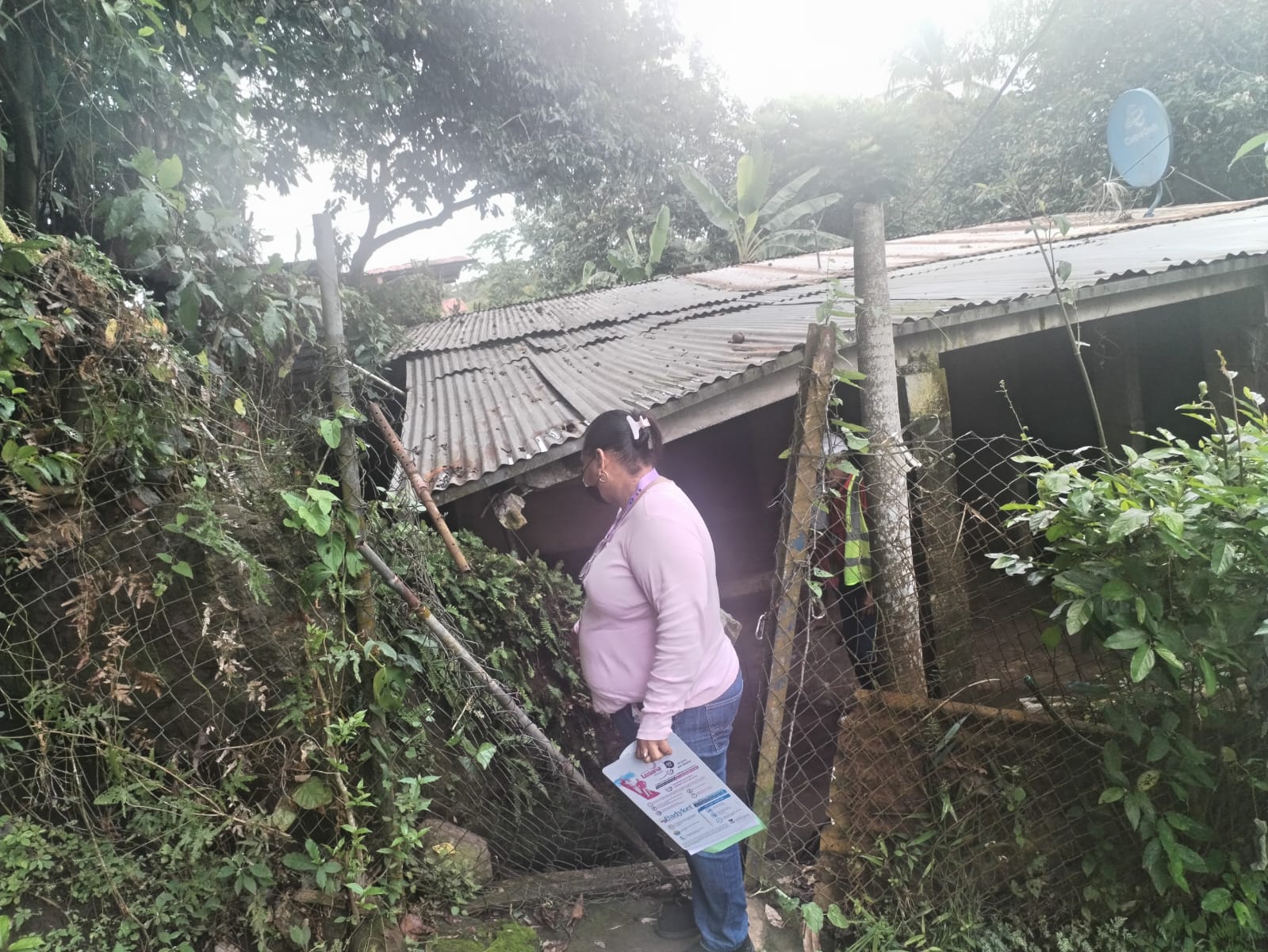 Panamá, 15 de julio de 2024. El Ministerio de Vivienda y Ordenamiento Territorial evaluó a una familia afectada por un desprendimiento de roca que dañó parcialmente el portal de su vivienda ubicada en un área rural del sector 79 de Villalobos en el corregimiento de Pedregal del distrito de Panamá.