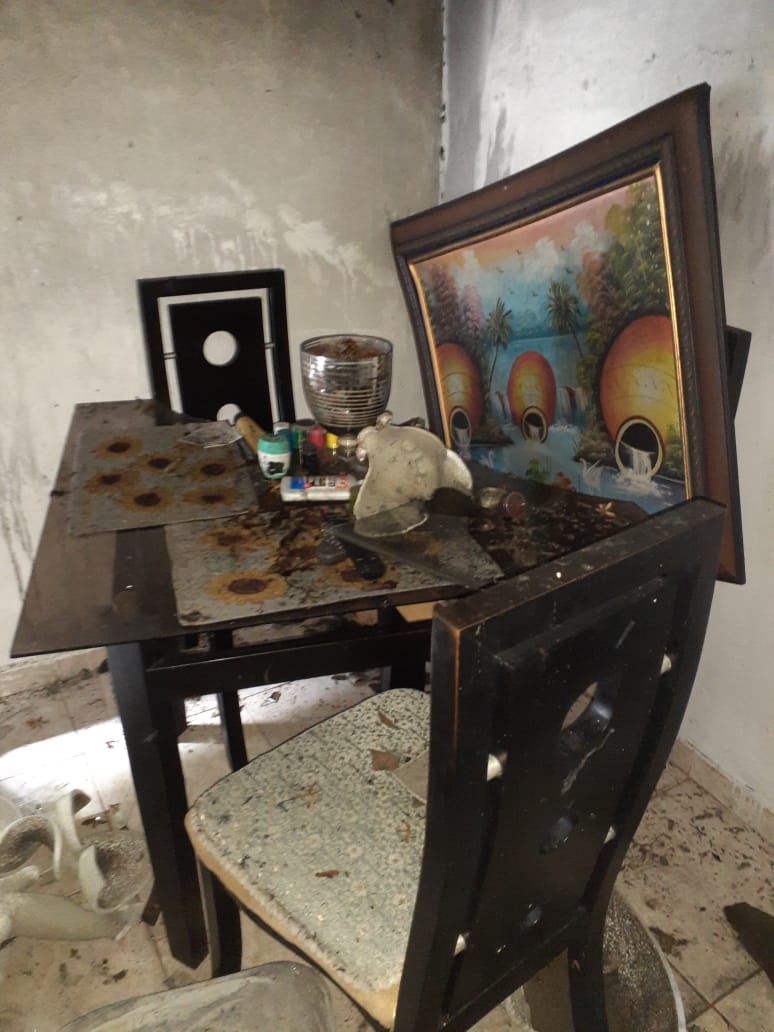 Según el informe social, el fuego, ocurrido este lunes, inició en uno de los cuartos propagándose en casi toda la casa, donde destruyó gran parte del mobiliario y perjudicó considerablemente el 50% del techo y cielo raso, además de puertas, ventanas y el sistema eléctrico.