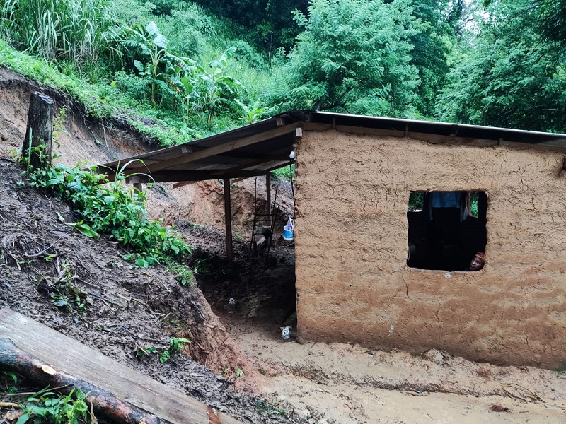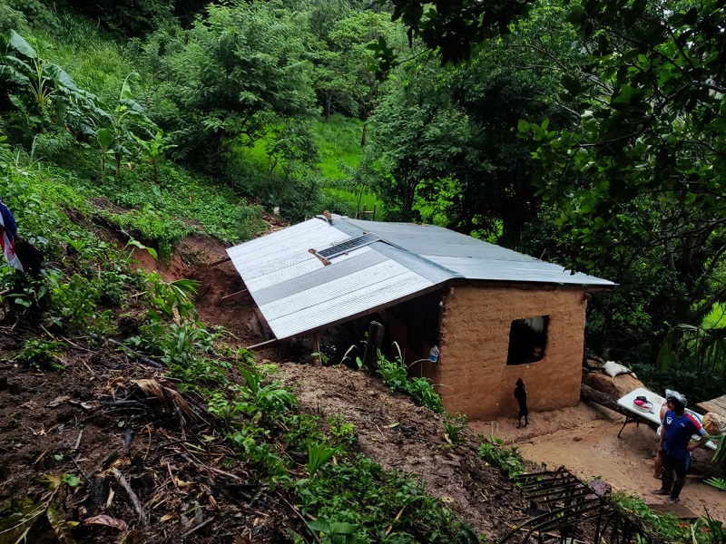 Según el informe técnico, las fuertes lluvias de los últimos días por el paso de la onda tropical 10, ocasionaron que la tierra cediera y se deslizara, dejando afectada esta vivienda, lo que pone en peligro a la familia.
